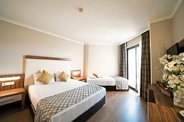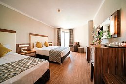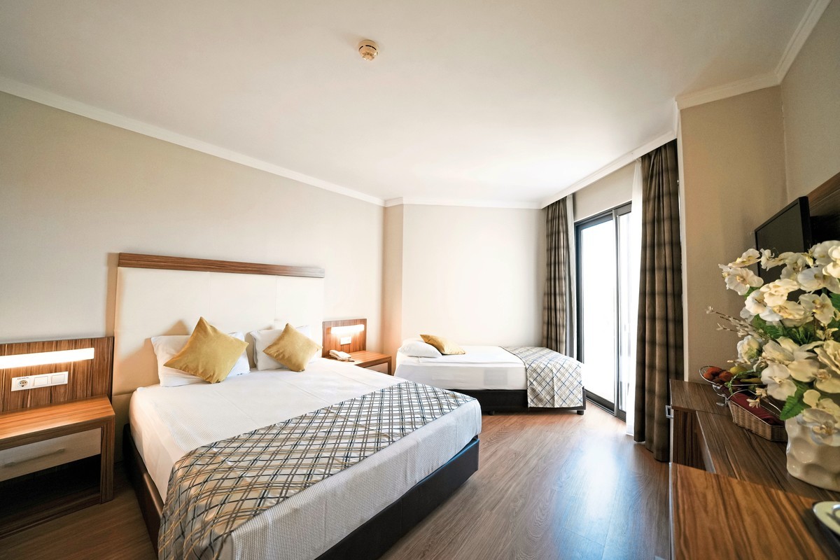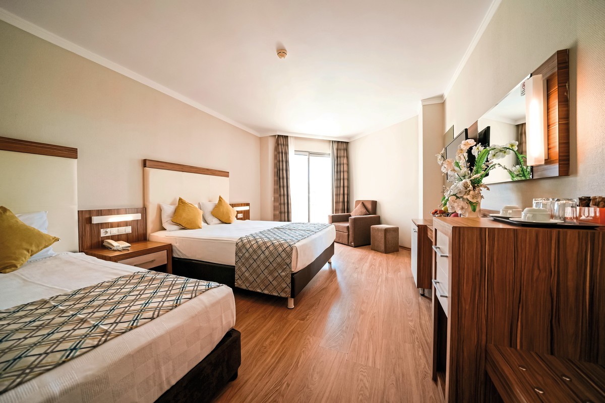 Zum Strand: ca. 250 m, zum Ortszentrum: Side, ca. 8 km, Sandstrand: von der Anlage getrennt durch Promenade, Sonnenschirme, Liegen, Strandtuch/Badetuch, ca. 01.04.-31.10.