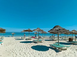 Direkt am Strand, zum Stadtzentrum: Sousse Medina, ca. 14 km, zum Ortszentrum: Monastir ca. 8 km, zum Flughafen: Tunis (TUN), ca. 167 km, zum Flughafen: Monastir (MIR), ca. 2 km, zum Flughafen: Enfidha (NBE), ca. 60 km, ruhig, Sandstrand: flach abfallend, gehört zur Anlage, Sonnenschirme, Liegen, Strandtuch/Badetuch (gegen Kaution), Liegewiese: gehört zur Anlage.