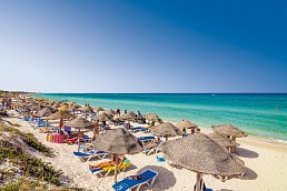 Direkt am Strand, zum Flughafen: Monastir (MIR), ca. 45 km, zum Flughafen: Enfidha (NBE), ca. 105 km, zum Flughafen: Tunis (TUN), ca. 211 km, Sandstrand: Sonnenschirme, Liegen.