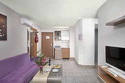 - 31-35 qm, Familien, separates Schlafzimmer, kombinierter Wohn-/Schlafraum, 1 Bad, Dusche, WC, Haartrockner, Fliesen, Klimaanlage, individuell regulierbar, Mini-Kühlschrank, Safe, TV (Sat-TV), WLAN, Kochnische, Balkon